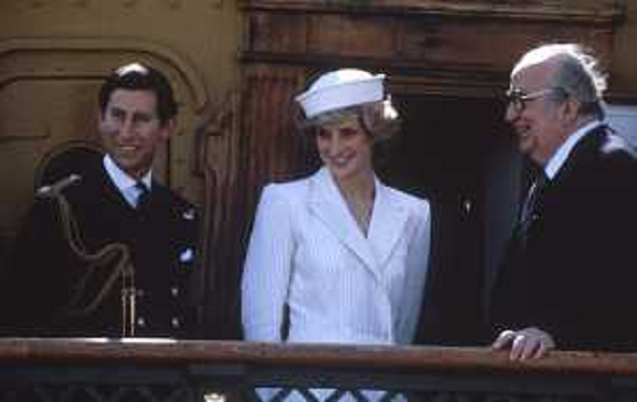 22/09/2024 Personaggi GIOVANNI SPADOLINI NELL'ANNO 1985 A VENEZIA CON I REALI INGLESI RE CARLO E LADY DIANA SULLA NAVE AM ...