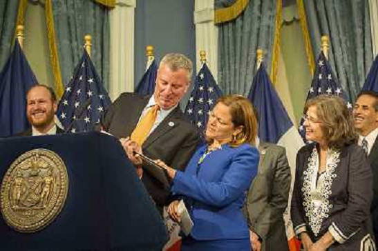 12/06/2014 Personaggi ONLY ITALY-New York Mayor Bill De Blasio, left, joined by New York City Council Speaker Melissa Mar ...