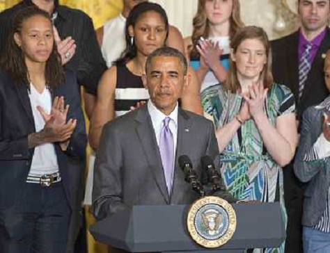 14/06/2014 Personaggi ITAL ONLY - Il Presidente degli Stati Uniti Barack Obama durante la cerimonia della squadra e la vit ...