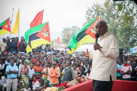 14/06/2014 Personaggi ITALY ONLY - Il Presidente del Mozambico Armando Guebuza parla ai residenti di Tete, Mozambico, 12 g ...