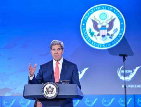 18/06/2014 Personaggi ITALY ONLY - Il segretario di Stato Usa John Kerry parla alla sessione della conferenza "nostro mare ...