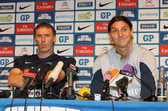 01/08/2013 Altre ONLY ITALY-PSG, Zlatan Ibrahimovic lors de la conférence de presse aux côtés de son entraineur Laure ...
