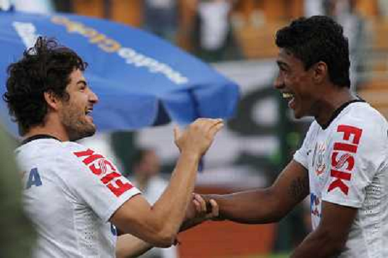 04/02/2013 Altre ITALY ONLY - CORINTHIANS VS OESTE - esultanza di Alexandre Pato con il suo compagno di squadra Paul ...