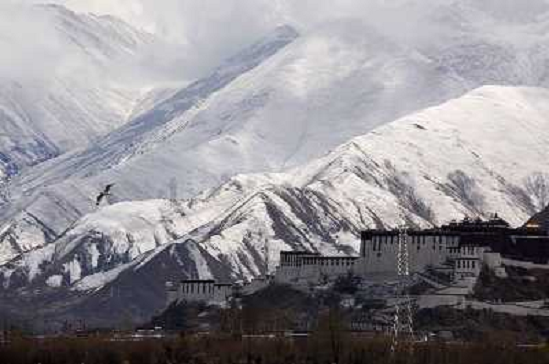25/03/2014 Paesaggi ITALY ONLY - Vedute dopo una neve di primavera del paesaggio delle zone umide a Lhasa, capitale dell ...
