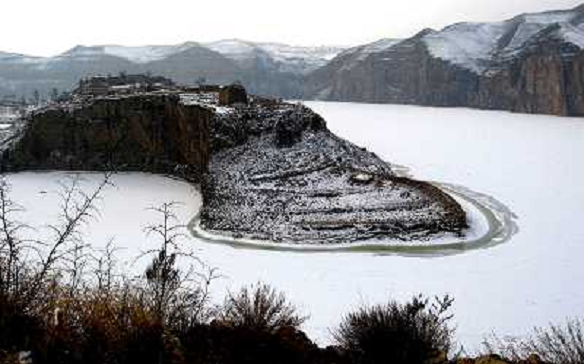 05/02/2013 Paesaggi ITALY ONLY - Il paesaggio innevato nella sezione Laoniuwan del Fiume Giallo coperto dalla neve in Qi ...