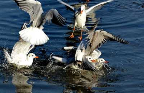 20/01/2014 Natura ITALY ONLY - Gabbiani si nutrono nel fiume Xinkai nella citta' di Qinhuangdao, provincia di Hebei, a ...