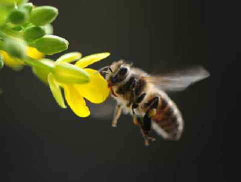 25/02/2014 Natura ITALY ONLY - Una ape tra i fiori a Chengdu, capitale della Cina sud-occidentale di provincia di Sich ...