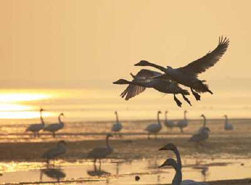 03/03/2014 Natura ITALY ONLY - Cigni selvatici in riva al lago in Rongcheng City, a est della provincia cinese di Shan ...