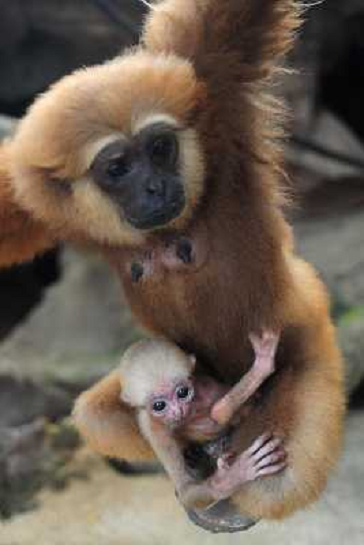 30/03/2014 Natura ITALY ONLY - Una femmina di gibbone del Borneo con il suo cucciolo allo zoo di Ragunan a Jakarta, In ...