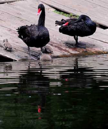 20/06/2014 Natura ITALY ONLY - Cigni neri su un lago al Chanbaidao Forestry Park di Shenyang, capitale del nord-est de ...