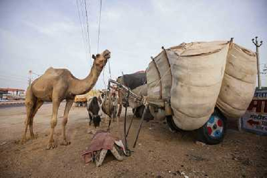 17/07/2014 Natura ITALY ONLY - Cammelli nella citta' di Bikaner, Rajasthan India, 13 luglio 2014 che svolgono un ruolo ...