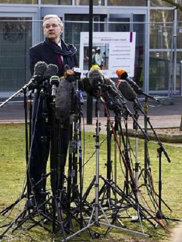 25/02/2011 Altri ITALY ONLY - LONDRA: Il fondatore di WikiLeaks Jullian Assange in conferenza stampa fuori della Pret ...