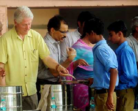 17/07/2014 Altri ITALY ONLY - L'ex presidente americano Bill Clinton mentre serve il cibo per agli studenti in Jaipur ...