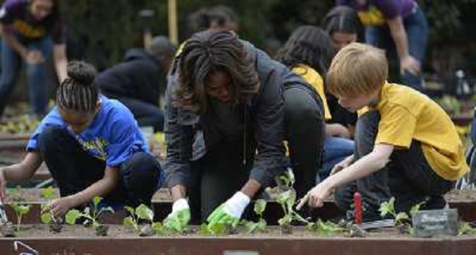 04/04/2014 Altri ITALY ONLY - La First Lady americana Michelle Obama con gli studenti locali per piantare nell'orto d ...