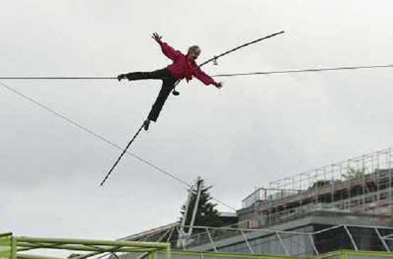 07/04/2014 Altri ITALY ONLY - L'equilibrista francese Denis Josselin si esibisce sopra il fiume Senna a Parigi, il 6 ...