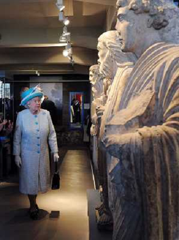 10/04/2012 Altri ITALY ONLY - REALI INGLESI: La regina Elisabetta II d'inghilterra durante una visita al Museo Yorksh ...