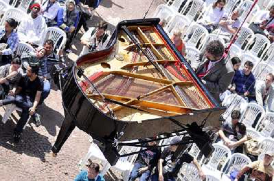 08/05/2012 Altri ITALY ONLY - Brasile: Il pianista Ricardo Miller durante un concerto appeso per aria che segna l'eve ...