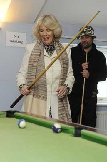 09/02/2012 Altri ITALY ONLY: REALI INGHILTERRA - CAMILLA, DUCHESSA DI CORNOVAGLIA, MENTRE GIOCA A BILIARDO DURANTE LA ...