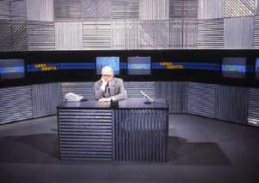 19/09/2021 Giornalisti ENZO BIAGI NELLA TRASMISSIONE TELEVISIVA “LINEA DIRETTA“ NELL'ANNO 1985
