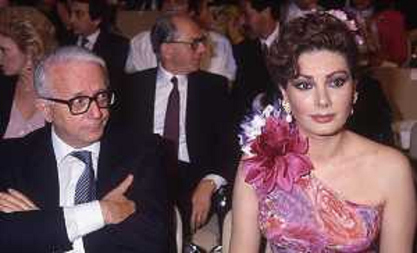 19/09/2021 Giornalisti ENZO BIAGI CON EDWIGE FENECH AI GIARDINI NAXOS NELL'ANNO 1985