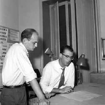 18/07/2022 Giornalisti EUGENIO SCALFARI NELLA REDAZIONE DEL SETTIMANALE "L'ESPRESSO" A ROMA NEGLI ANNI 1950-1960