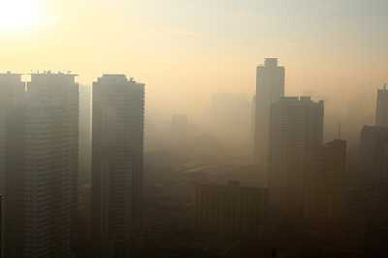 01/01/2014 Città ITALY ONLY - Grattacieli ricoperti da nebbia prodotta dallo smog e inquinamneto a Manila, nelle Fili ...