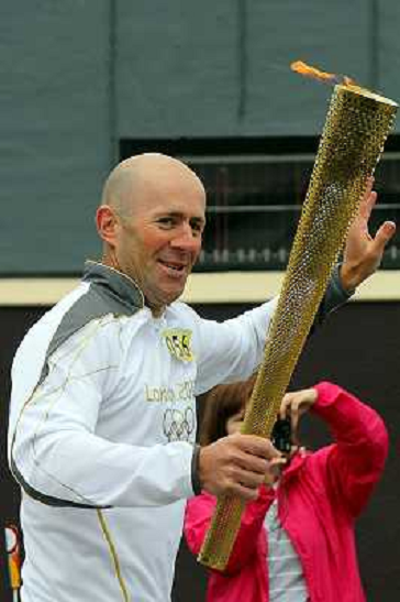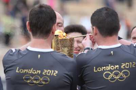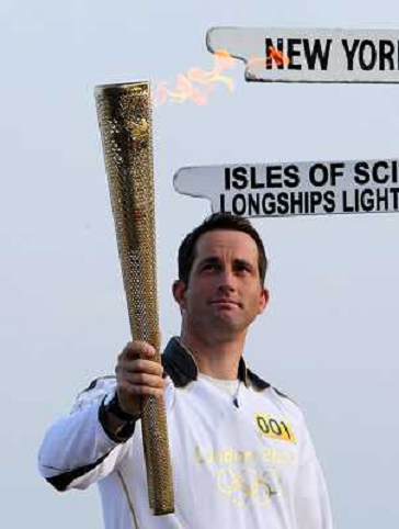 20/05/2012 Olimpiadi ITALY ONLY - UK: Ben Ainslie vincitore di tre medaglie d'oro di vela olimpica con la fiamma olimpica ...
