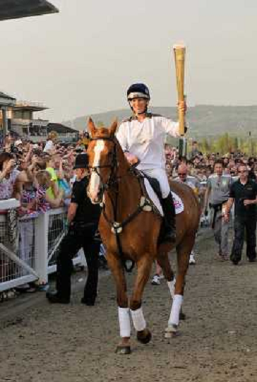 24/05/2012 Olimpiadi ONLY ITALY-Zara Phillips on Toytwon with the Olympic torch at Cheltenham Racecourse as part of the ...