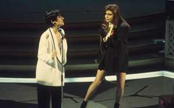 10/08/2024 San Remo LOREDANA BERTE' CON LA SORELLA MIA MARTINI AL FESTIVAL DI SANREMO NELL'ANNO 1993