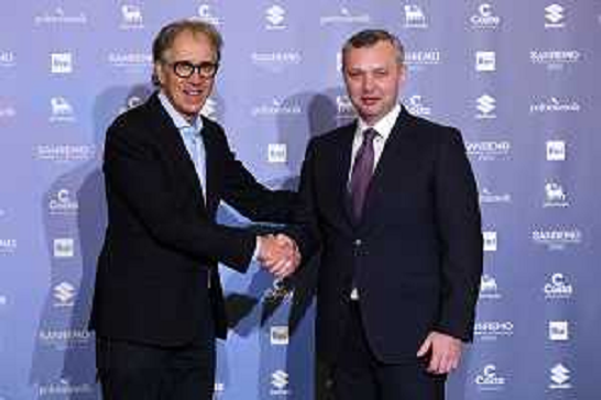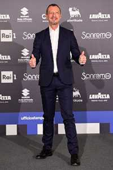 03/02/2022 San Remo Photocall Amadeus e Drusilla Foer 72mo Festival della Canzone Italiana Sanremo 03.02.2022