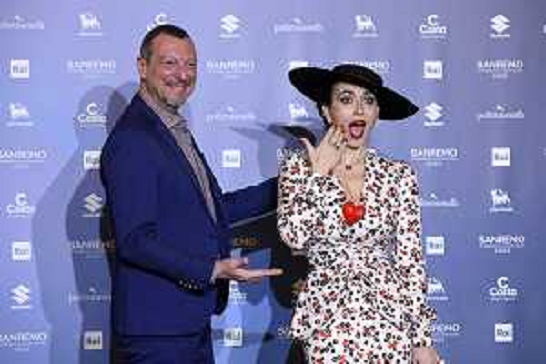 02/02/2022 San Remo 02-02-2022 SANREMO 72 FESTIVAL DI SANREMO-PHOTOCALL LORENA CESARINI-AMADEUS