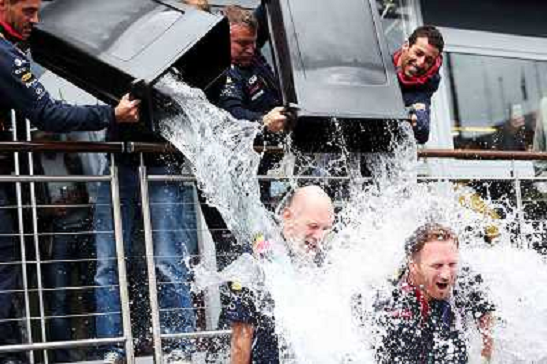 24/08/2014 Automobilismo ONLY ITALY- GP BELGIO F1 L'ICE BUCKET TRA ADRIAN NEWEY E CHRISTIAN HORNER