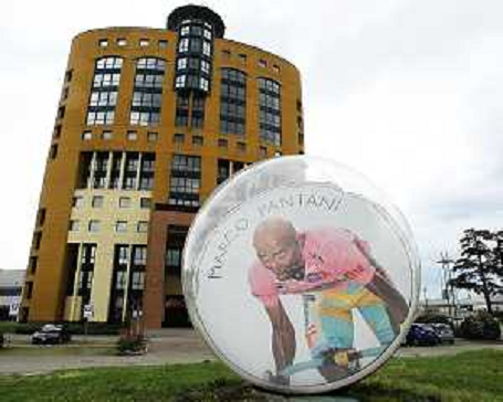 03/04/2019 Ciclismo LA BIGLIA GIGANTE RAFFIGURANTE MARCO PANTANI NELLA SEDE DI MERCATONE UNO IMOLA 03.04.2019