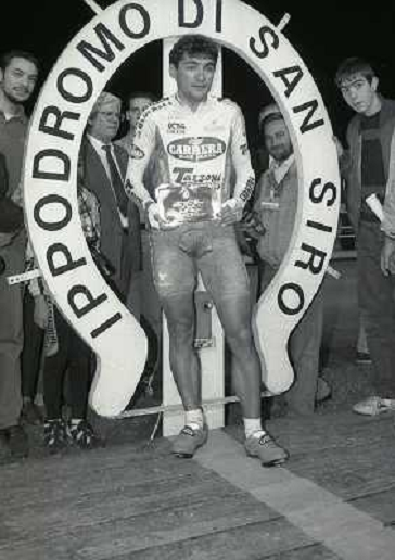 12/02/2017 Ciclismo 1995 MILANO-IPPODROMO DI SAN SIRO SFIDA TRA CLAUDIO CHIAPPUCCI E IL CAVALLO PEACE KRONOS