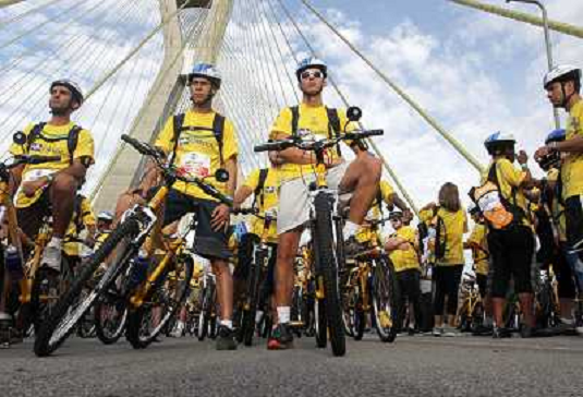 27/01/2013 Ciclismo ITALY ONLY - Ciclisti con le loro biciclette durante il 5o World Bike Tour, a San Paolo, in Brasile, ...