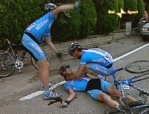 09/10/2006 Ciclismo MICHELE GOBBI A TERRA DOPO LA CADUTA DURANTE IL GP BEGHELLI IMMAGINI TELEVISIVE