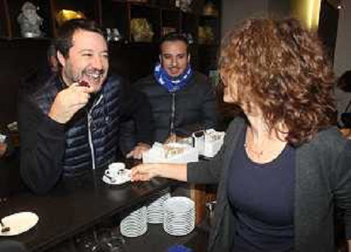 03/12/2022 Cronaca IMOLA 10 12 2019 FOTO D'ARCHIVIO MATTEO SALVINI AL BAR PRENDE UN CAFFE'