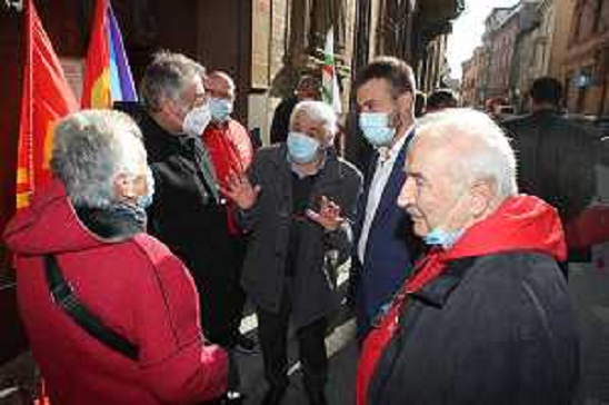 10/10/2021 Cronaca IMOLA 10 10 2021 SINDACO MARCO PANIEI AL PRESIDIO DELLA CGIL PER I FATTI SUCCESSI IERI A ROMA AL COR ...