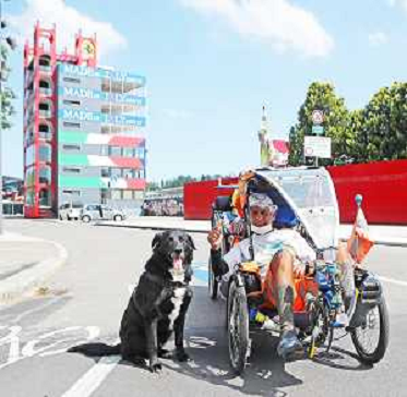 26/05/2021 Cronaca IMOLA 26 05 2021 MARTIN HUTCHINSON E IL CANE STARSKY IL GIRAMONDO IN BICICLETTA A IMOLA
