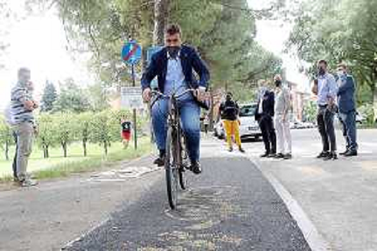 05/06/2021 Cronaca IMOLA 05 06 VIA MOLINO VECCHIO TRATTO DI PAVIMENTAZIONE SPERIMENTALE REALIZZATA CON MATERIALE DI RIC ...
