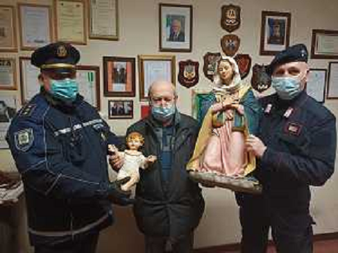 08/01/2021 Cronaca Carabinieri della Stazione di Cesano Boscone hanno recuperato alcune statue in gesso per presepe, tr ...