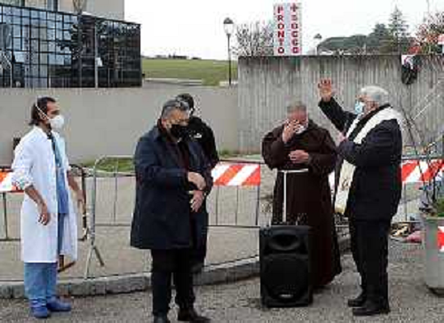15/12/2020 Cronaca IMOLA 15 12 2020 AUSL IMOLA BENEDIZIONE DEL VESCOVO GIOVANNI MOSCIATTI AGLI OPERATORI DEL 118 INFERM ...