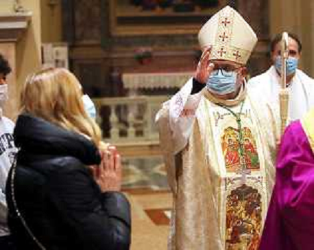 26/12/2020 Cronaca IMOLA 24 12 2020 CATTEDRALE SAN CASSIANO VEGLIA DI NATALE VESCOVO GIOVANNI MOSCIATTI DURANTE LA MES ...