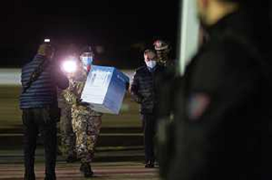27/12/2020 Cronaca 26-12-2020. ITALIA, SARDEGNA, CAGLIARI, AEROPORTO CIVILE MAMELI DI ELMAS (CA). ARRIVO AEREO MILITARE ...