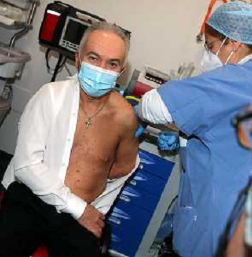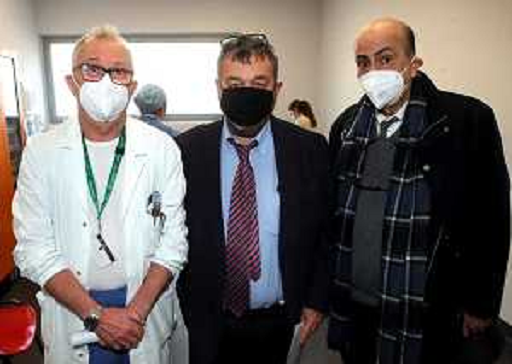 29/12/2020 Cronaca IMOLA 27 12 2020 VACCINAZIONE A IMOLA NELLA FOTO DA SINISTRA PRIMO VACCINATO DOTT STEFANO PASQUALI A ...