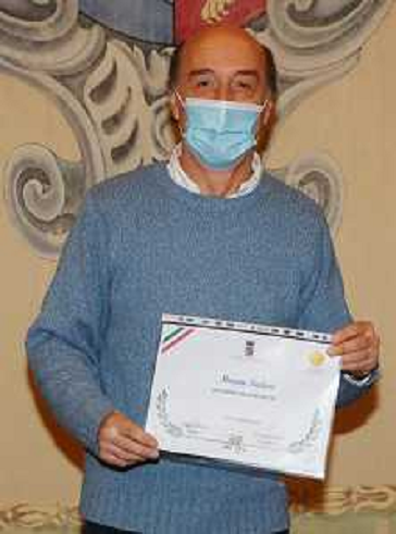 28/12/2020 Cronaca IMOLA 28 12 2020 SINDACO MARCO PANIERI E ASSESSORE ALLA CULTURA GIACOMO GAMBI PREMIANO MORENO SINDON ...
