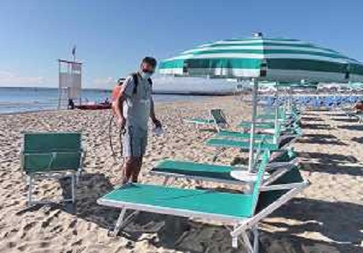 20/06/2020 Cronaca MARE RIVIERA ROMAGNOLA 20 06 2020 - SANIFICAZIONE DEGLI OMBRELLONI LETTINI E SDRAI SULLA SPIAGGIA