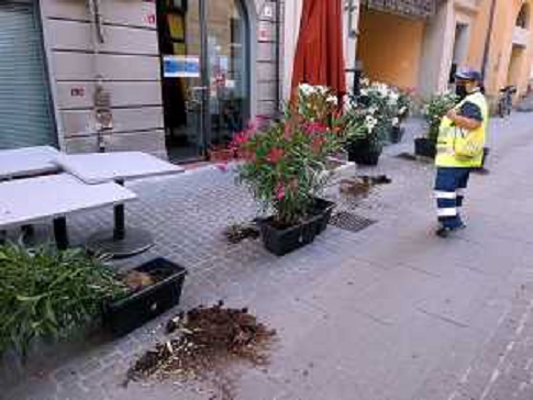 27/06/2020 Cronaca IMOLA PIZZERIA LA LANTERNA IN CENTRO DI IMOLA 27 06 2020 PIANTE SRADICATE E VASI RIVERSI PER TERR ...