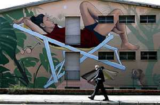 17/04/2020 Cronaca IMOLA 17 04 2020 EMERGENZA CORONAVIRUS - UNA PERSONA CON MASCHERINA PASSA DAVANTI ALL MURALES CHE RA ...