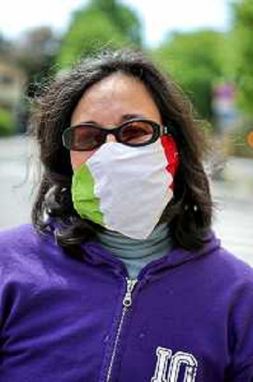 17/04/2020 Cronaca IMOLA 18 04 2020 EMERGENZA CORONAVIRUS - UNA SIGNORA IMOLESE CON LA MASCHERINA TRICOLORE